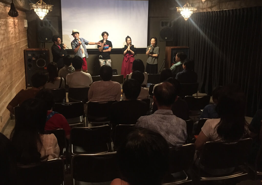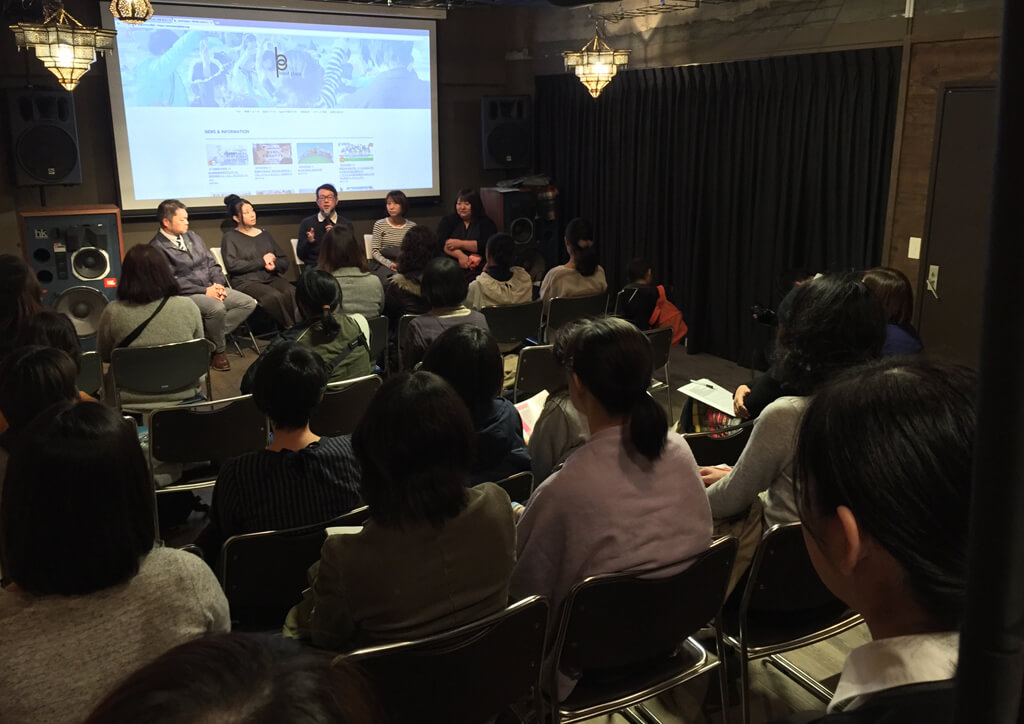 130インチのスクリーンやPA設備のあるイベントスペース。映画の上映会や演劇、音楽イベントの他、トークイベントや勉強会などにも利用されています。